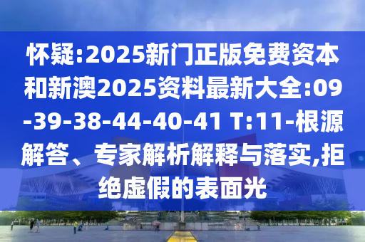 懷疑:2025新門正版免費資本和新澳2025資料最新大全:09-39-38-44-40-41 T:11-根源解答、專家解析解釋與落實,拒絕虛假的表面光