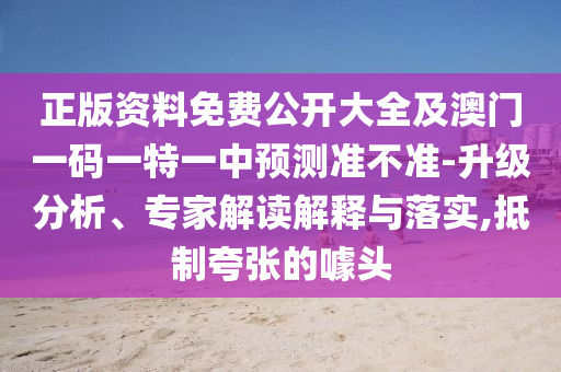 正版資料免費公開大全及澳門一碼一特一中預測準不準-升級分析、專家解讀解釋與落實,抵制夸張的噱頭