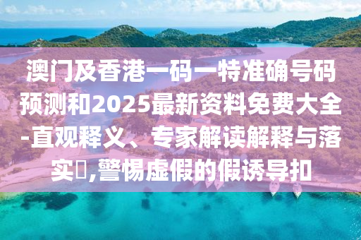 關于澳門及香港一碼一特準確號碼預測和2025最新資料免費大全的解讀與警惕虛假的假誘導扣