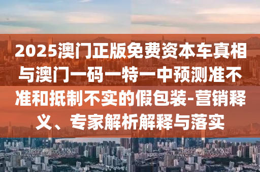 2025澳門正版免費資本車真相與澳門一碼一特一中預測準不準的營銷釋義、專家解析解釋與落實